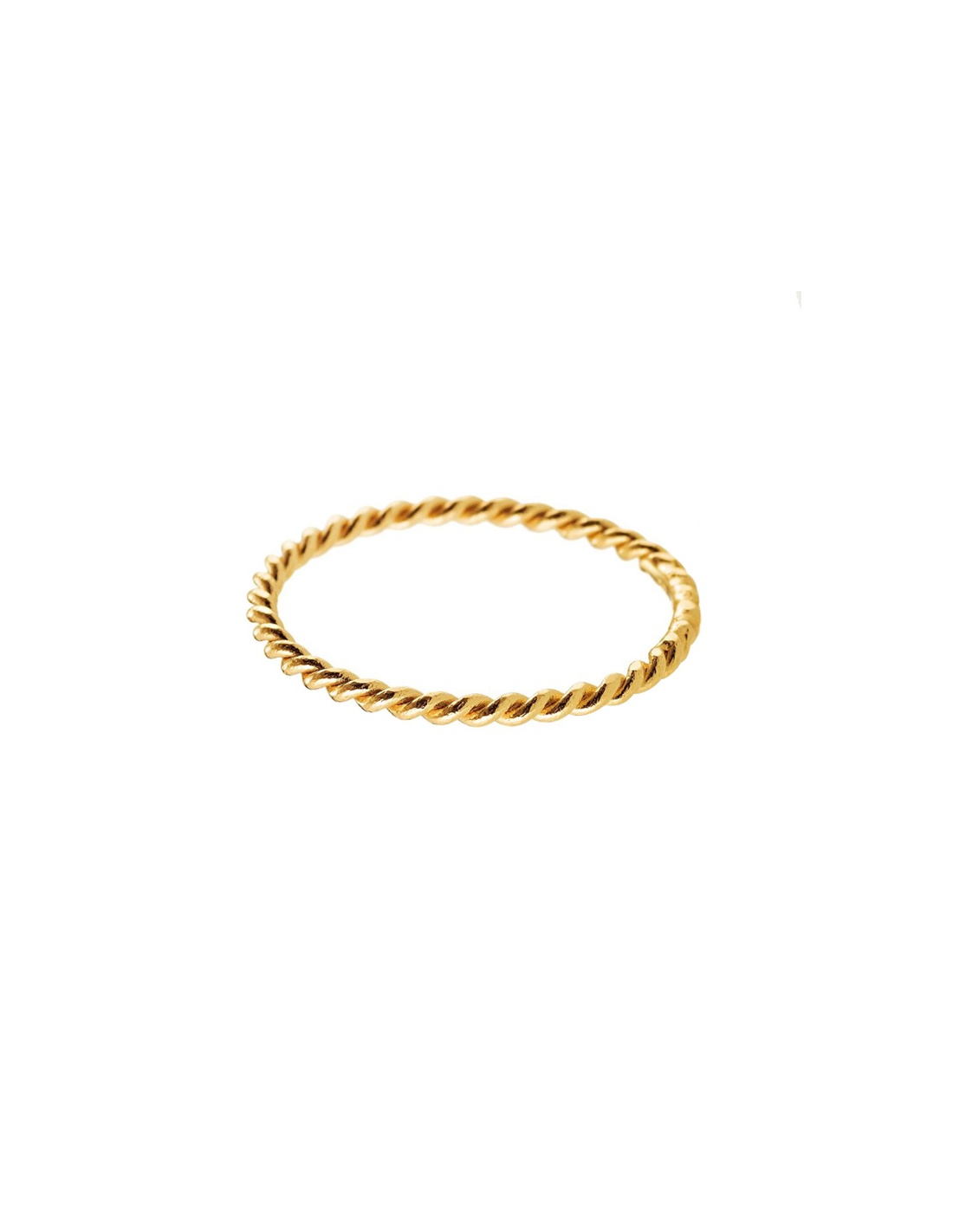 Anillo fino de efecto trenzado de plata 925 bañado en oro. Un anillo minimalista para llevar solo o combinado con otros anillos dorados para múltiples combinaciones.