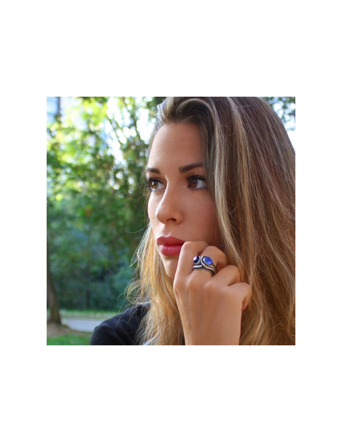 Anillo con cristales de swarovski en tonos azules bañado en plata.