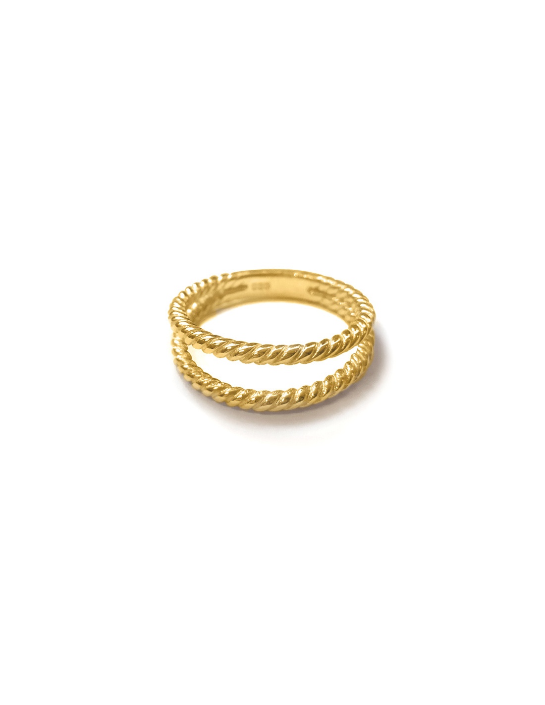 Anillo de plata de ley bañado en oro con motivo en espiral doble.