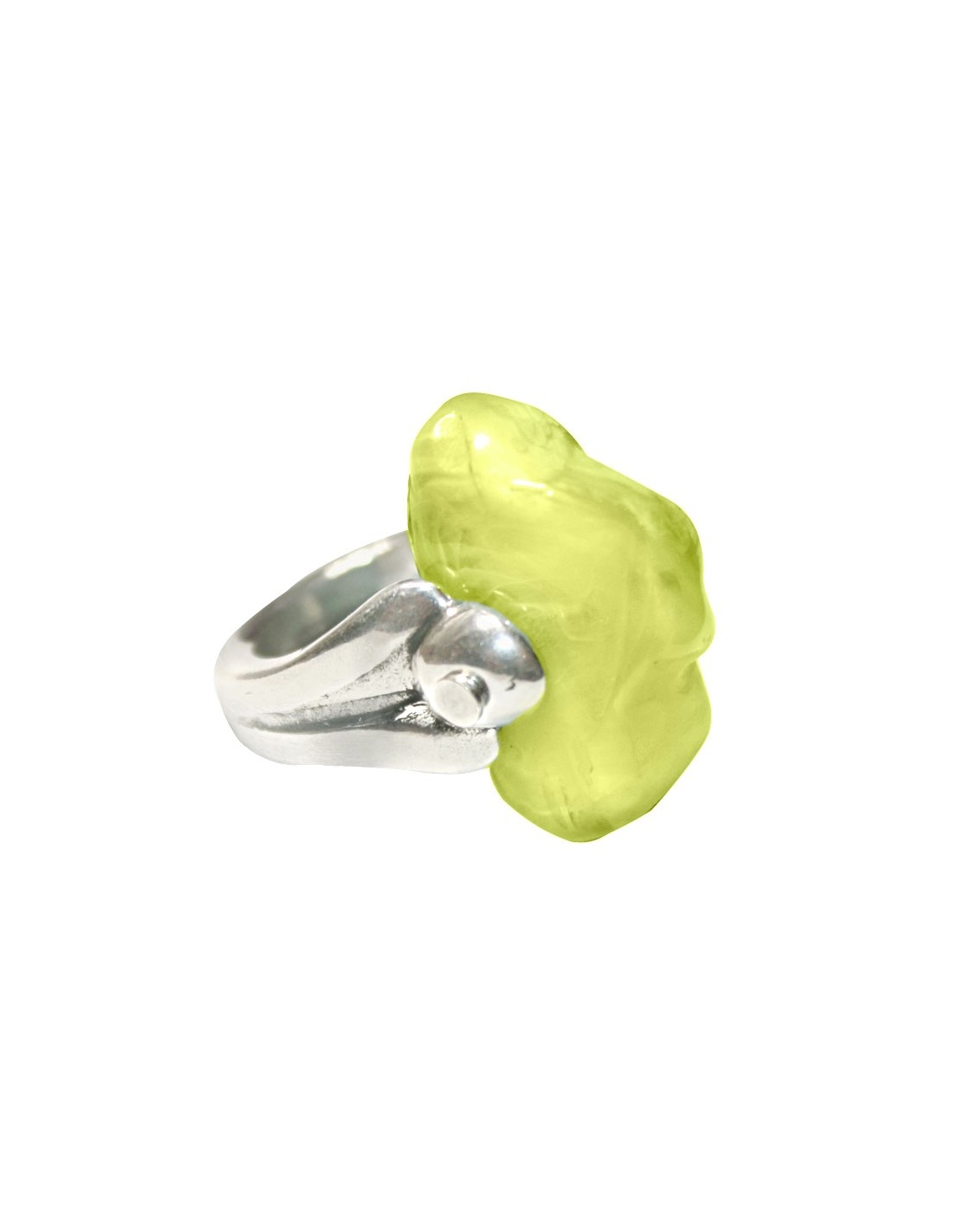 Anillo con baño de plata y pieza irregular de resina en color llima