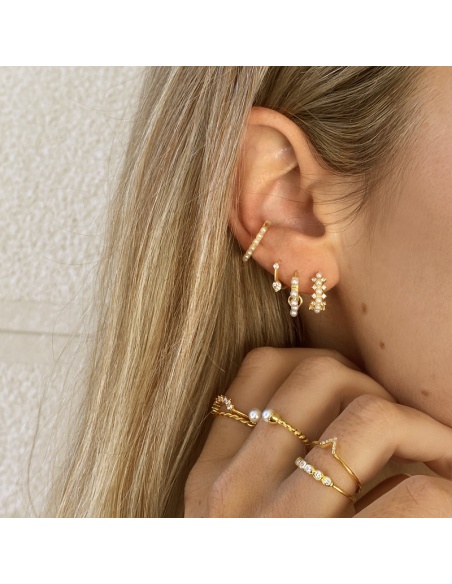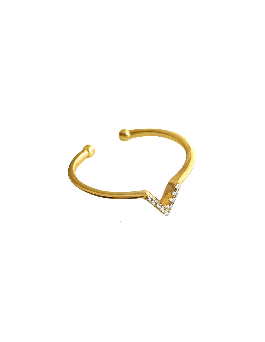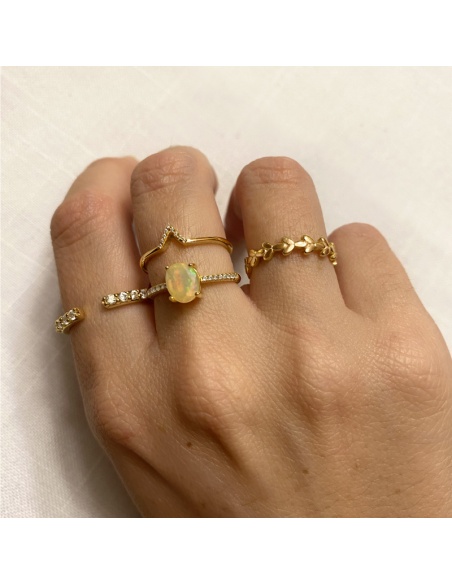 Anillo de plata de ley bañado en oro con circonitas blancas. Anillo regulable.