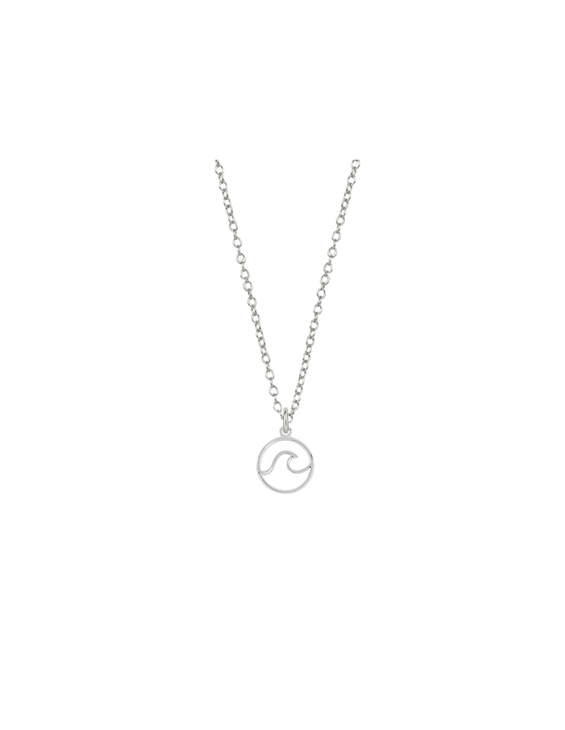 Collar con colgante en forma de ola de plata de ley con cadena fina de eslabones. Un colgante de estilo minimalista para la amantes del mar.