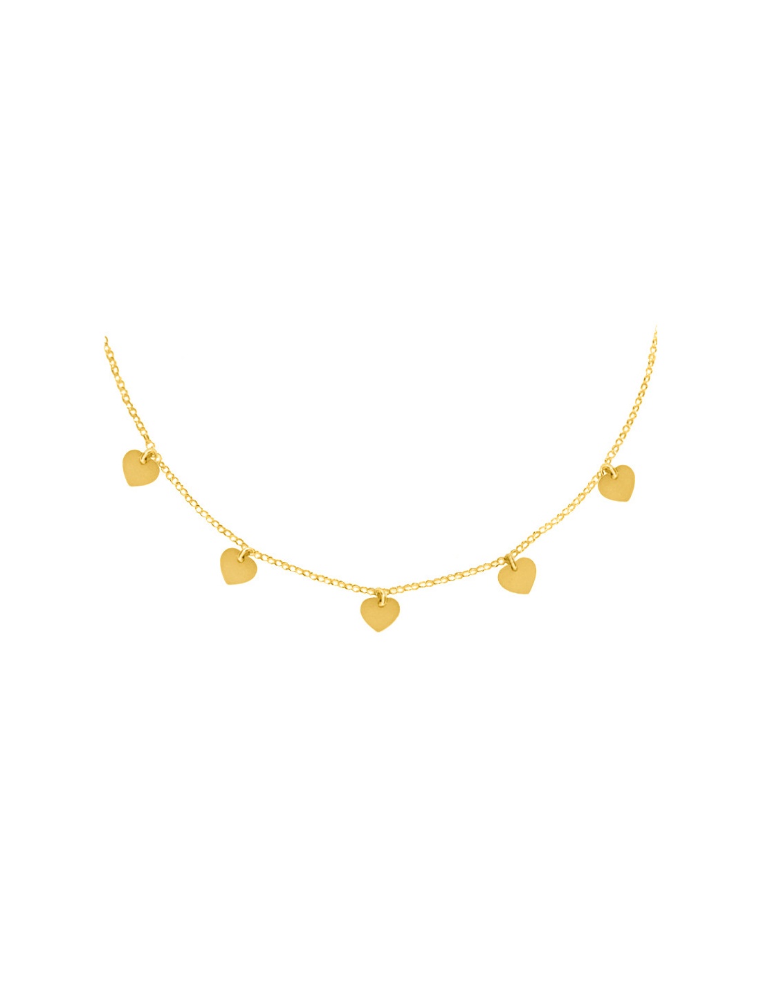 Colgante corto con cadena fina y colgantes de corazón, de plata de ley bañada en oro. Ideal para el día a día, de estilo minimalista y actual, que combinará con todos tus looks.