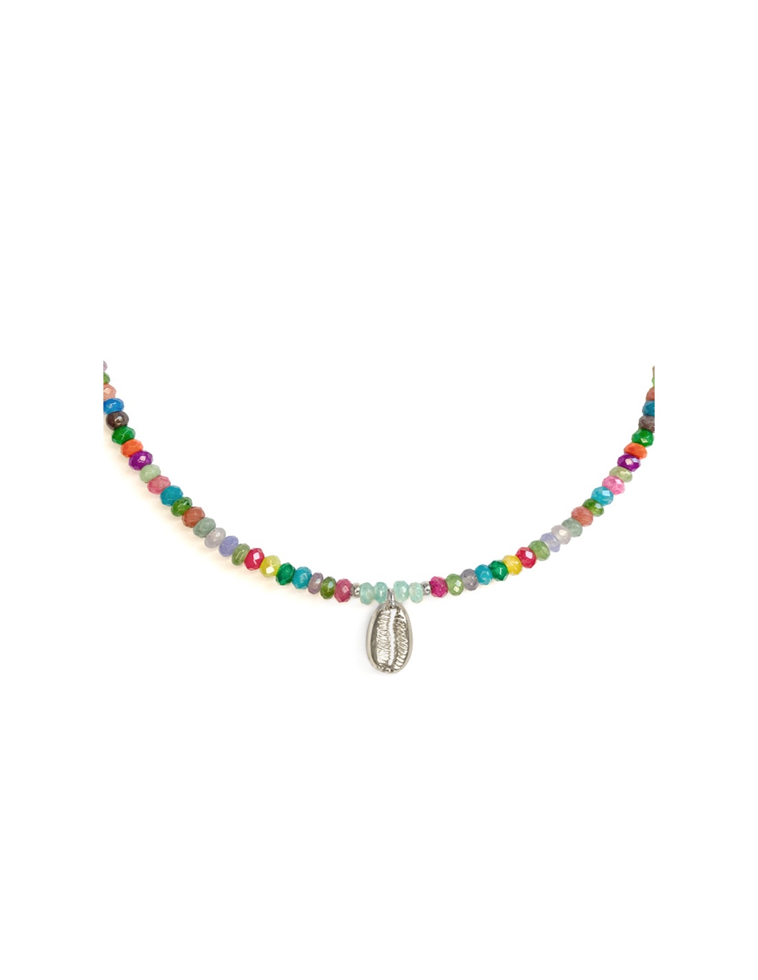Collar tipo choker de piedras naturales de colores y colgante de concha de plata 925.