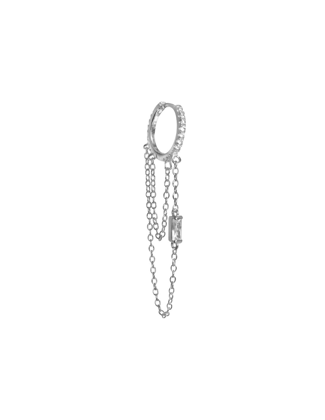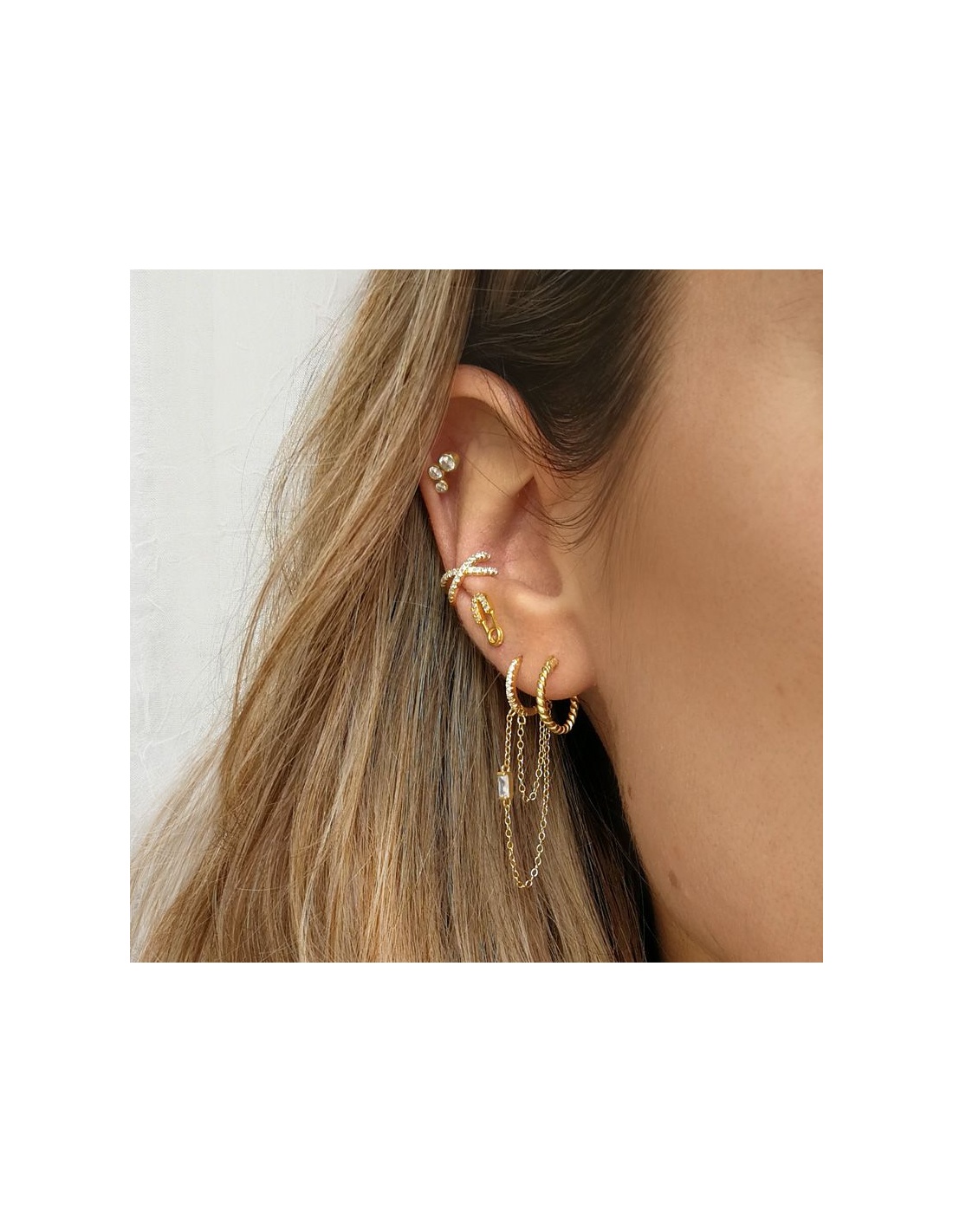 Pendientes de plata 925 de aro con circonitas blancas y cadena. Unos pendientes originales y de máxima tendencia para darle un toque chic a tu look. Podrás utilizarlo tanto para agujeros principales como secundarios.