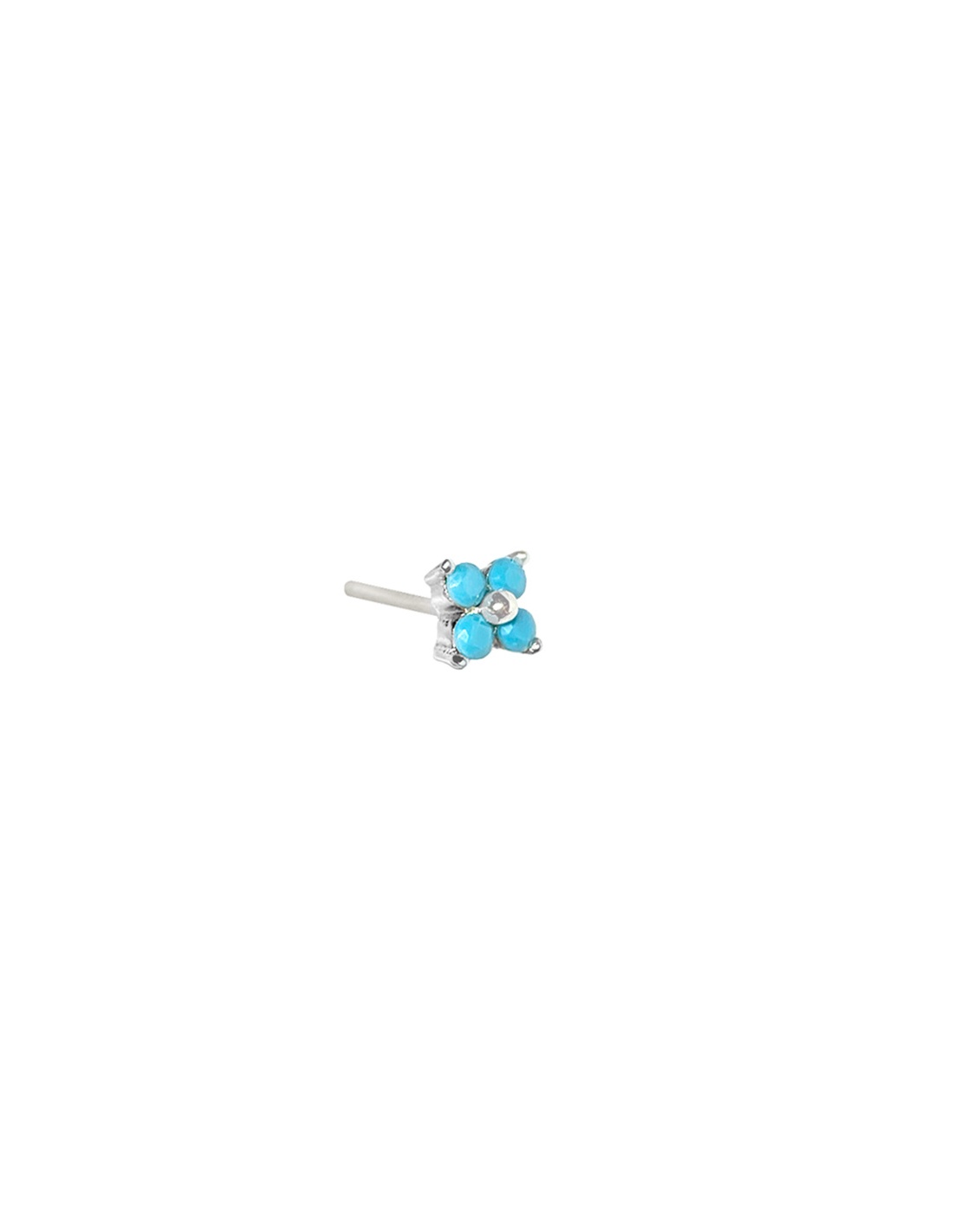 Pendiente mini en forma de flor con circonita azul de plata 925. Pendiente ideal para combinar con otros pendientes mini en piercing secundarios. Se vende por unidad.