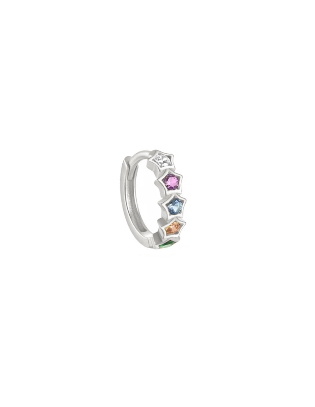 Pendiente de aro con decoración de estrellas con circonitas multicolor de plata 925. Unos pendientes elegantes y originales para lucir en cualquier ocasión.