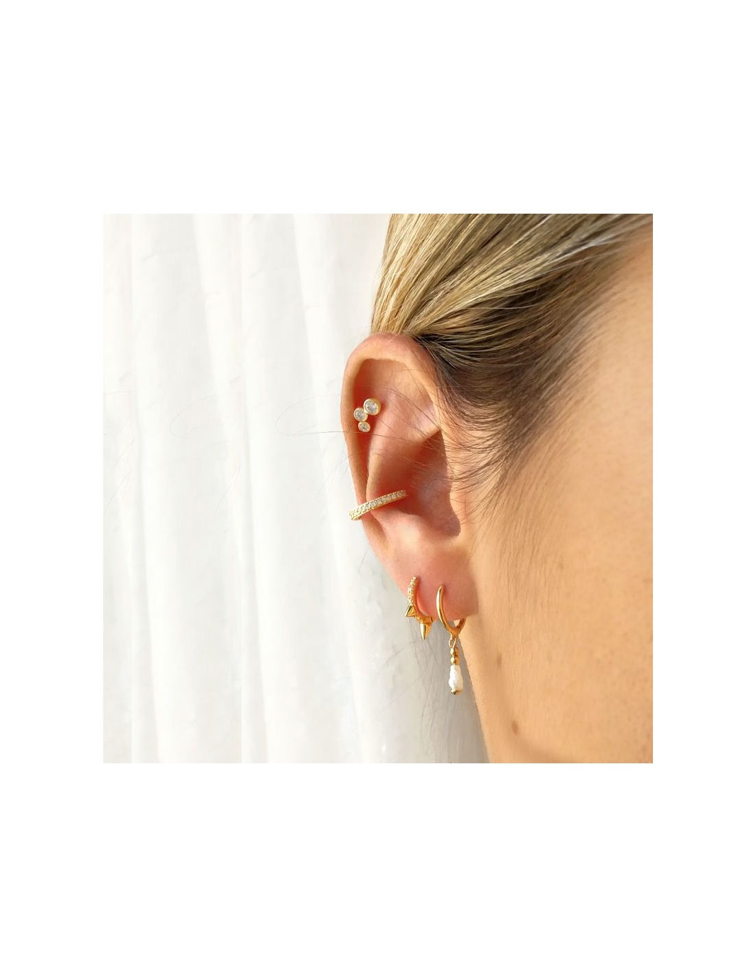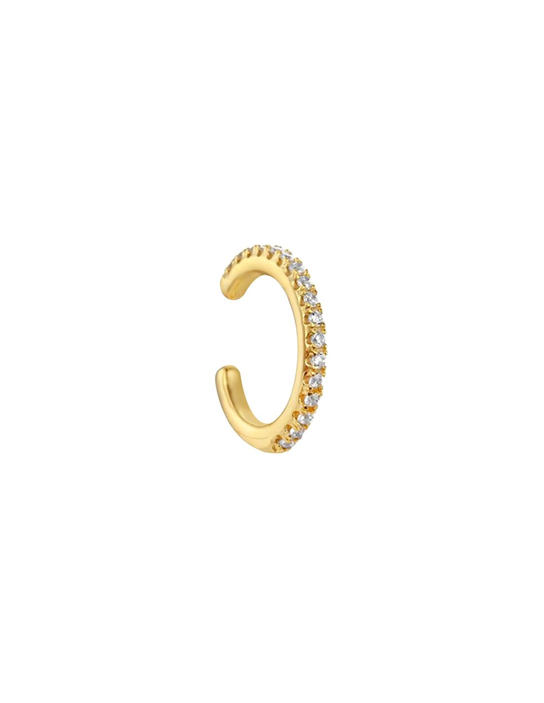 Pendiente earcuff de aro con circonitas blancas de plata de ley bañado en oro. Un pendiente de tendencia ideal para llevar sin necesidad de agujeros.