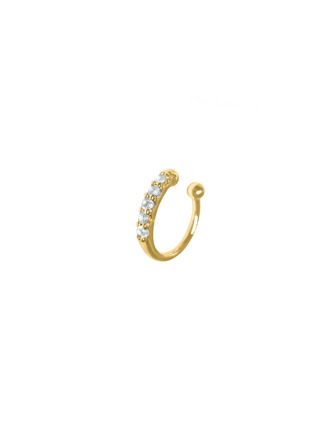 Pendiente earcuff en forma de aro con circonitas de plata de ley bañados en oro. Una forma fácil de decorar nuestra oreja sin necesidad de tener agujeros.