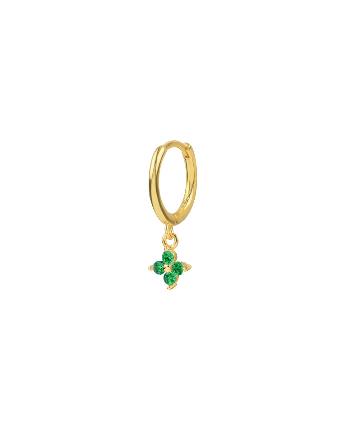 Pendiente de plata 925 bañado en oro de aro con colgante de flor con circonitas verdes.