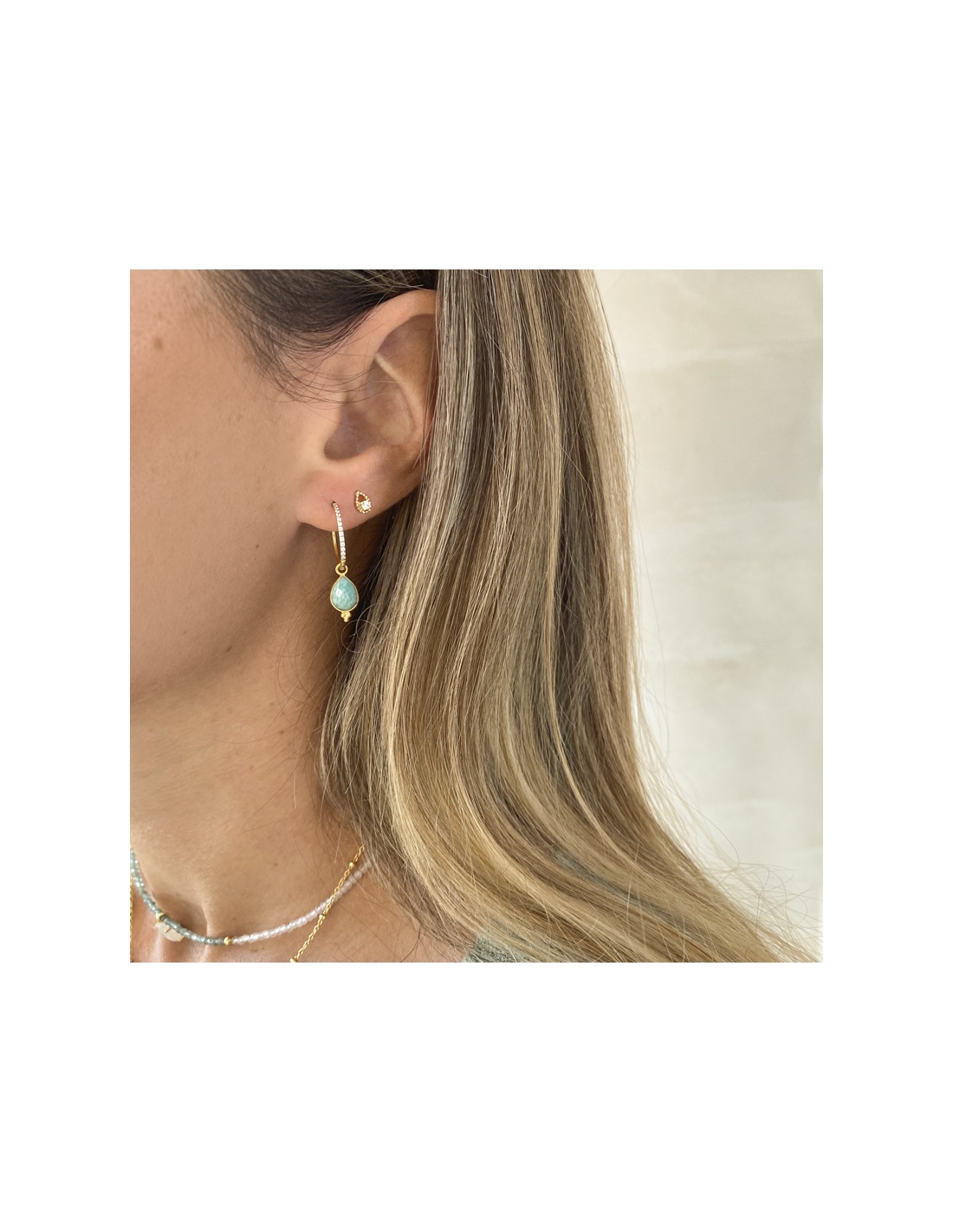 Pendientes de aro decorados con circonitas blancas y colgantes de amazonita en forma de lagrima engarzado en plata bañado en oro de 18K.