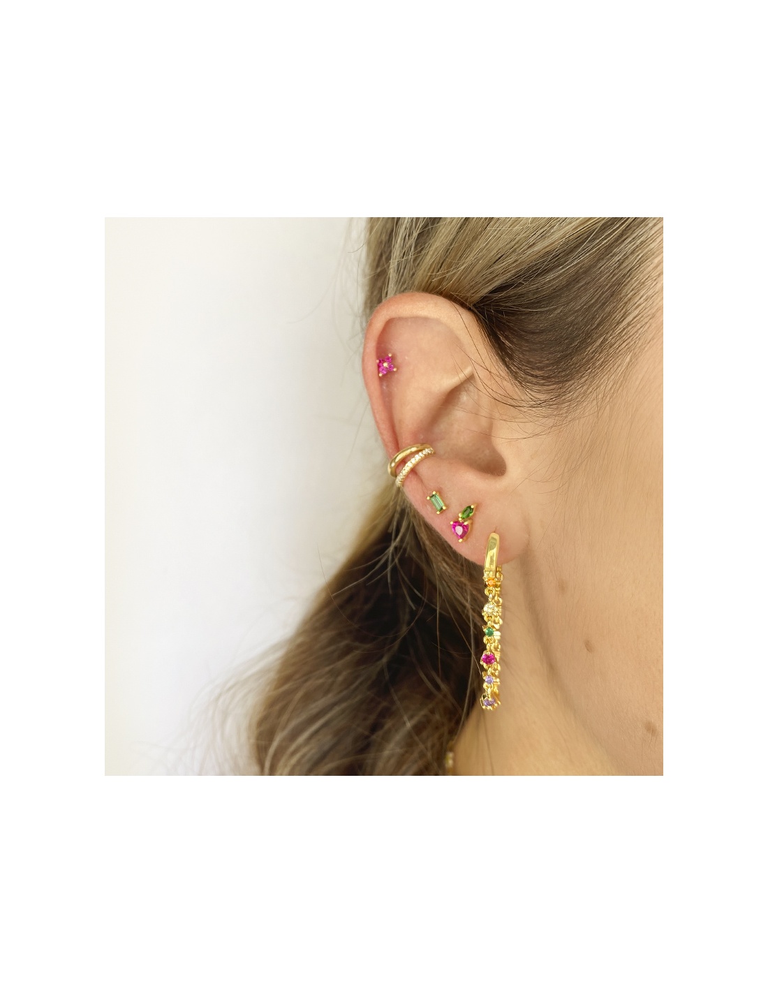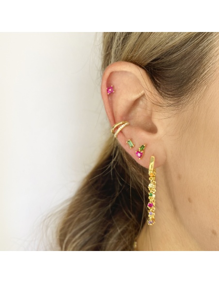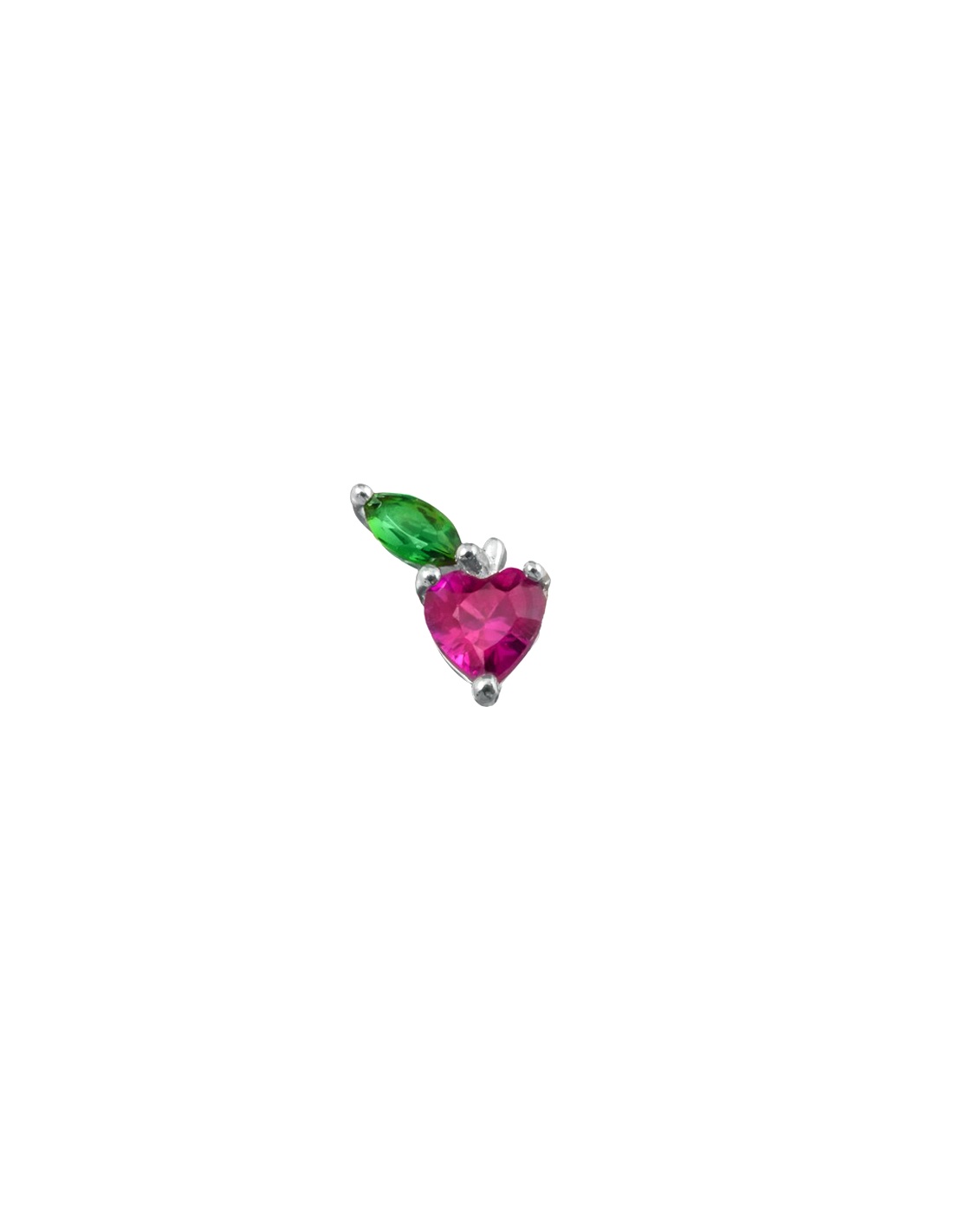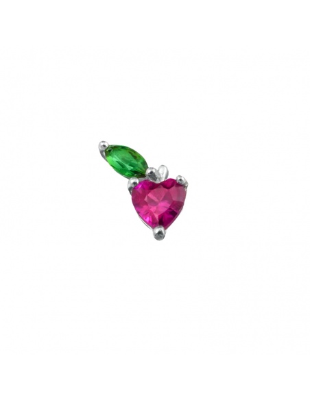 Pendiente de manzana con circonitas fucsia y verdes de plata de ley. Ideal para agujeros secundarios o como pendientes infantiles para niñas.