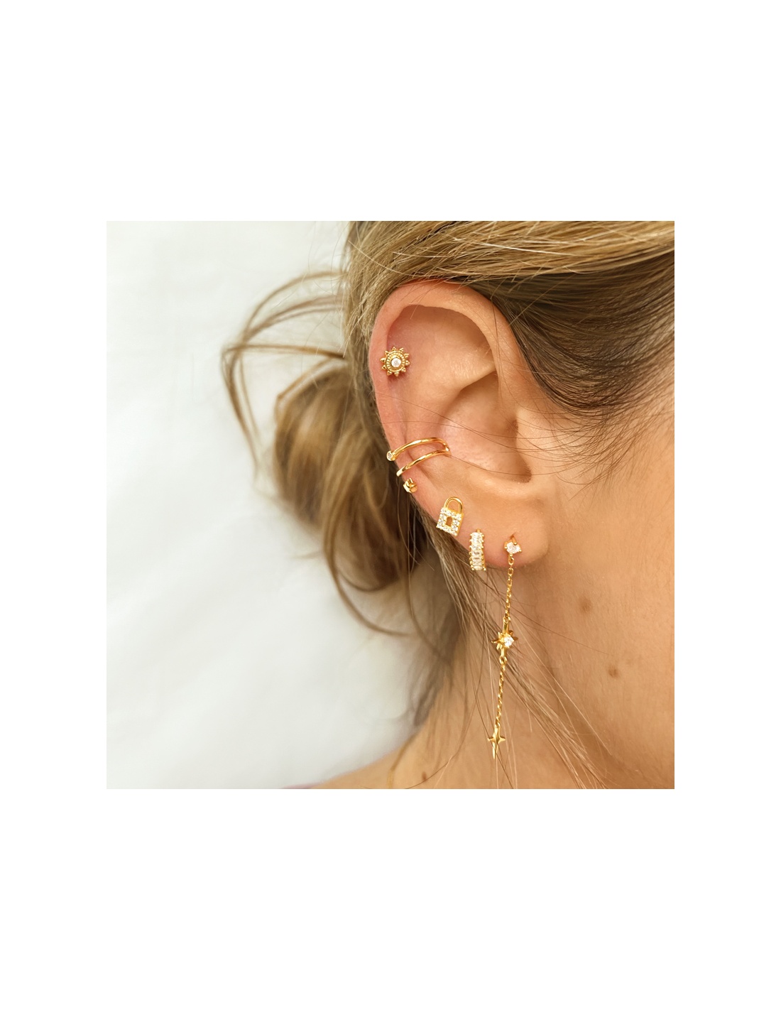 Piercing en forma de candado con cerradura decorado con circonitas blancas de plata con baño de oro de 18k. Un piercing original perfecto para múltiples combinaciones. Cierre de rosca.