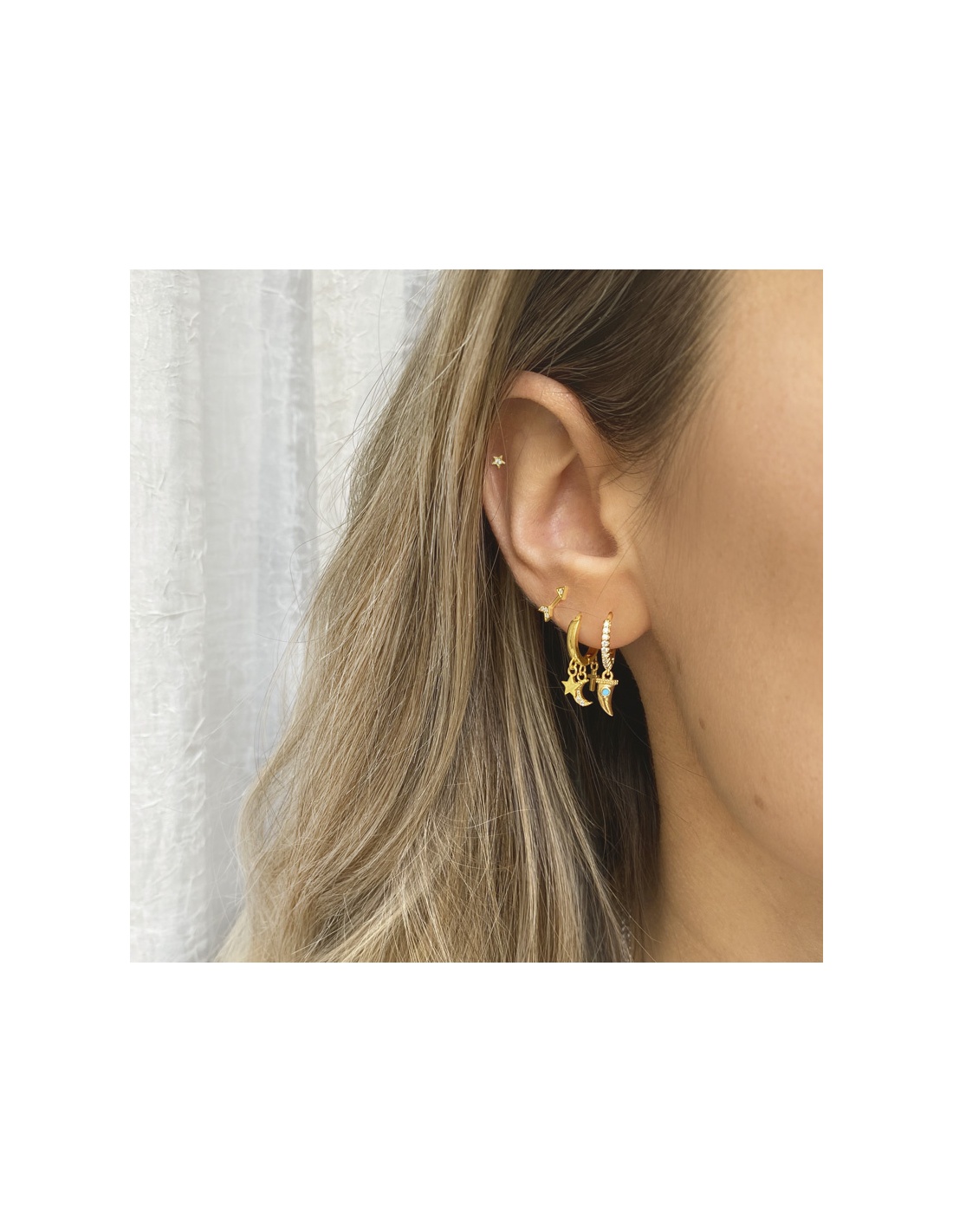 Piercing de plata de ley en forma de flecha con circonitas blancas. Permite utilizarse como piercing para el Tragus gracias a su cierre de rosca.