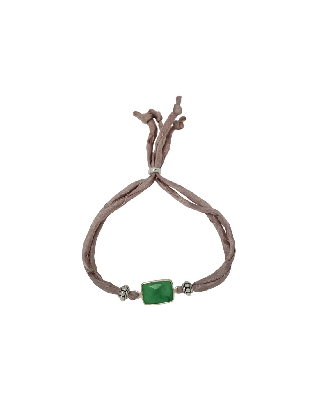 Pulsera con pieza central de crisoprasa y plata de ley con seda india.