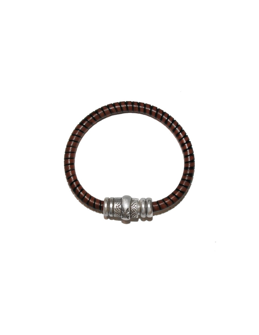 Pulsera artesanal para hombre de cuero marrón enroscado de alta calidad con cierre de imán bañado en plata. Una pulsera elegante y moderna y de estilo casual y desenfadado.