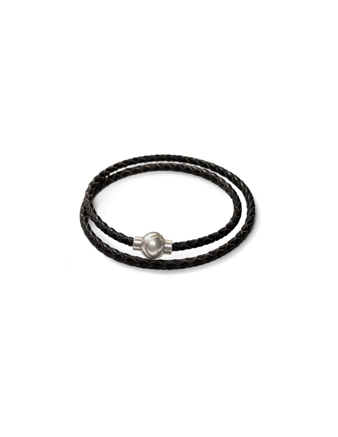 Pulsera de cuero trenzado de dos vueltas negro y cierre de imán