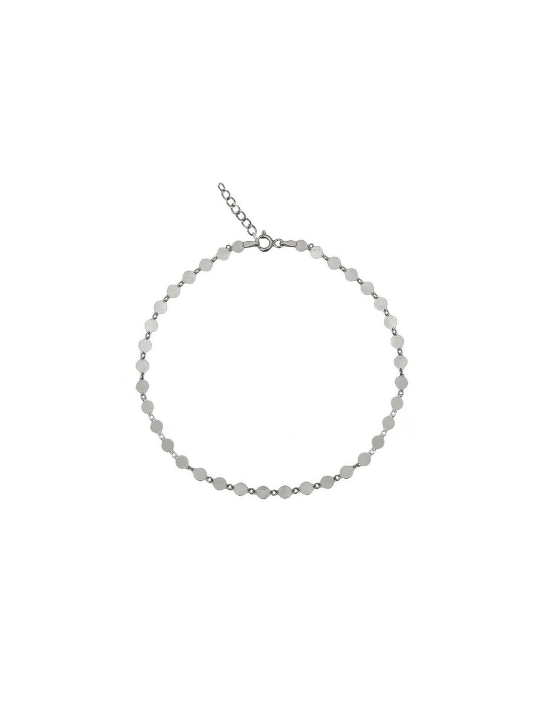 Tobillera de plata de ley con cadena hecha de mini medallitas entrelazadas. Una tobillera ideal para lucir cada día.